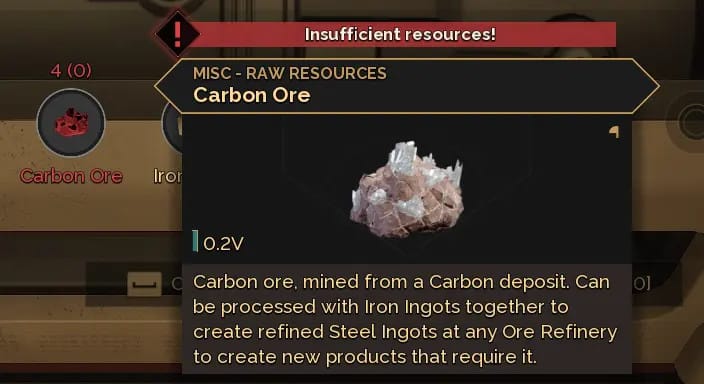 Transform carbon ore and iron ingots into steel ingots to unlock higher-quality schematics.